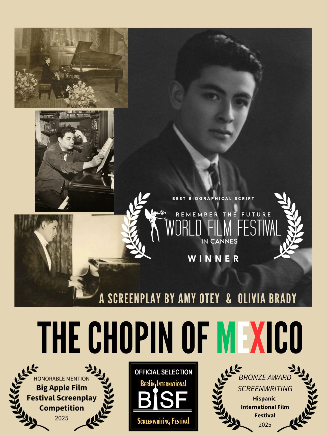 Discover the true story of THE CHOPIN OF MEXICO in this engaging, fact-based docudrama screenplay. A Mexican-born piano prodigy’s music is the key to restoring relationships with his adult American children but, first, the musician must overcome his traumatic past. This music biopic takes us on the life’s trek of trials and tribulations of pianist, Orlando Otey. Otey playing Chopin as well as his own original recordings are the SOUNDTRACK of this film.